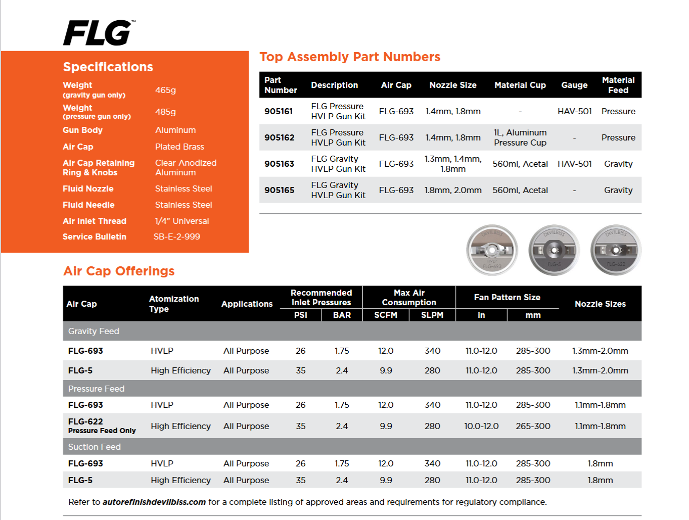The DeVilbiss FLG is a low cost, general purpose spray gun solution for use with a wide range of refinish paints and coatings. It’s suitable for most routine spray jobs in the refinish workshop, as well as handling DIY enthusiasts’ projects. This versatile gun is available in gravity and suction feed spray setups for batch applications, as well as a pressure feed option for larger project areas requiring fast coverage without the added downtime of re-filling small cups.